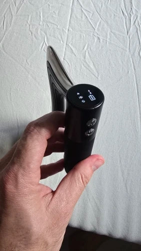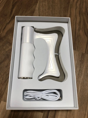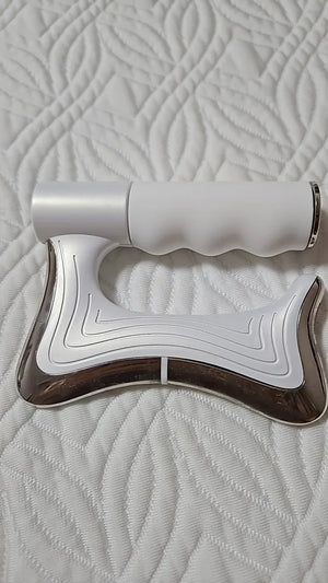 Charge via USB, select heat and vibration levels, then glide the blade over sore areas for 5–10 minutes. Apply light pressure and avoid broken skin or recent injuries.